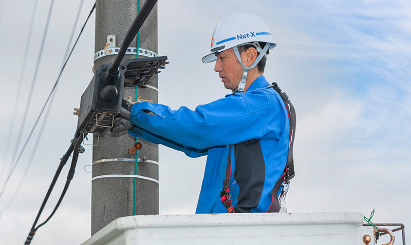 インターネットの開通を1日でも早く望まれるエンドユーザー様のため、関係各所へのスムーズな申請作業とスピーディかつ正確な施工を心がけています。大手通信事業者様からも「島根エリアの工事はネット・エックスさんの肩にかかっているから」という嬉しい声とともに高い信頼と評価をいただいています。