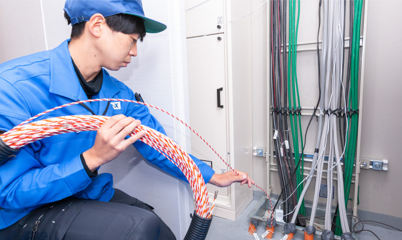 施工管理担当の現場監修の元、ケーブル工事や機器の設置を行います。