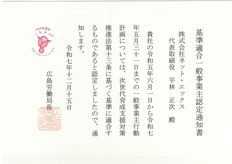 2025年くるみん認定を取得しました